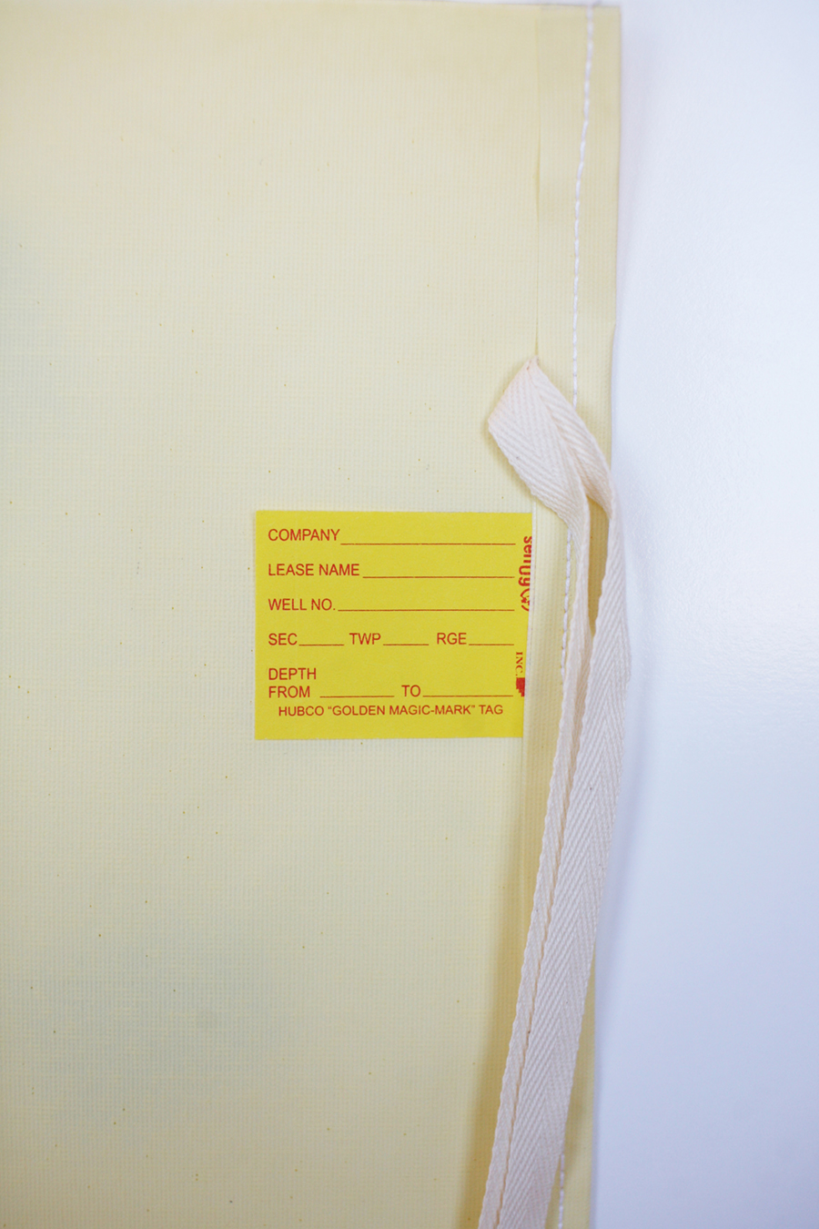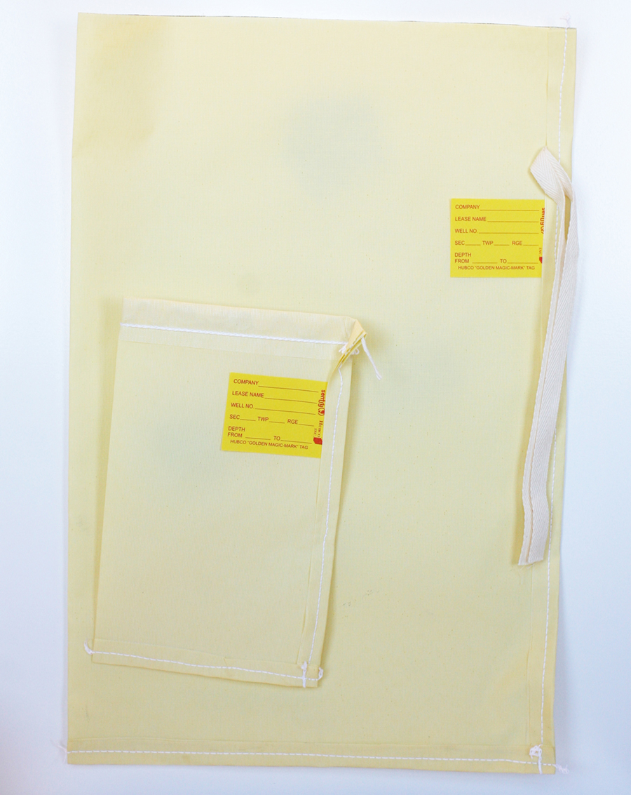 Bags are made of a polyester/latex coated material, equipped with a white natural polished drawstring or natural cotton tie tape (larger sizes) and a 2x3" Golden Magic Mark water proof, insect proof, and mildew proof 2 x 3-inch tag. Material is strong with very good filtration qualities for fine minerals, made from very durable material. It is rot/mildew resistant and inert to most organic and inorganic chemicals.Specifications & Product Details